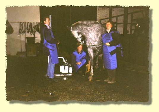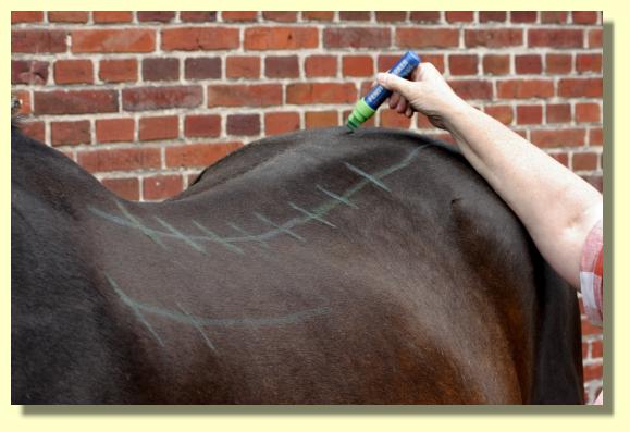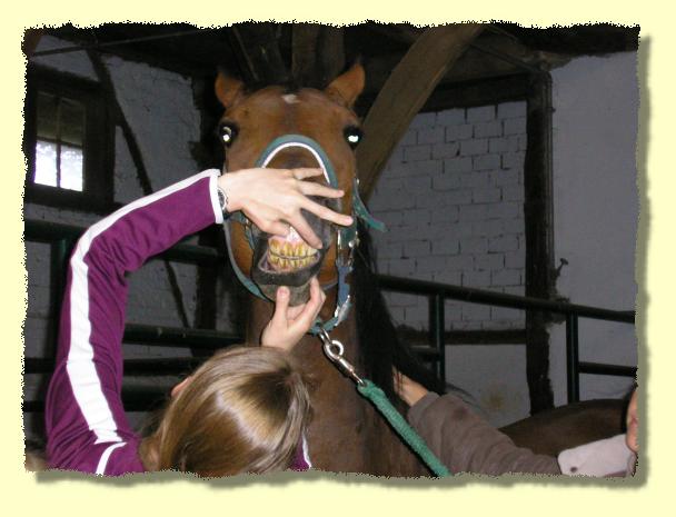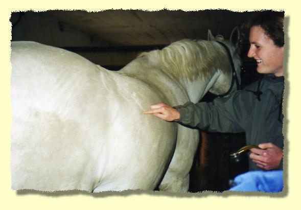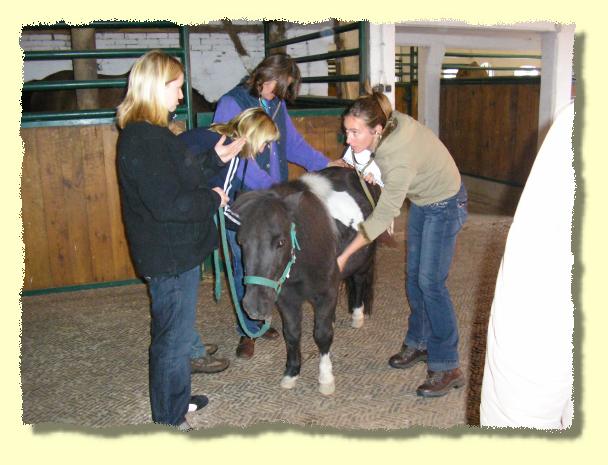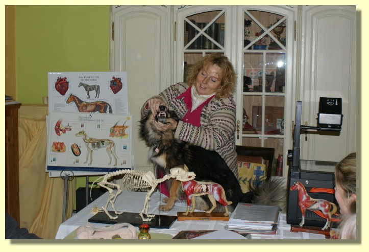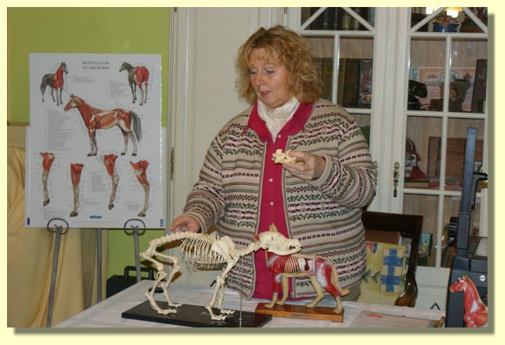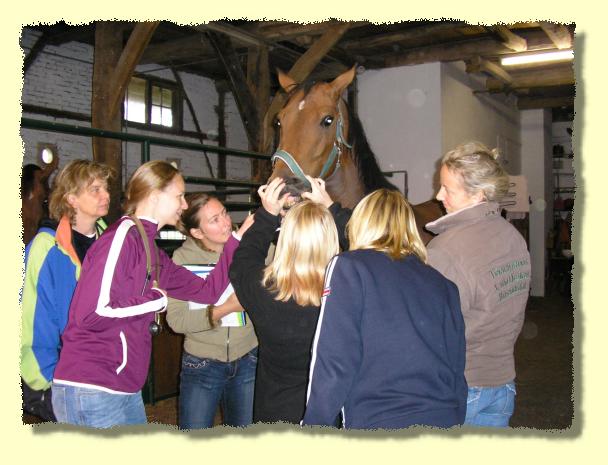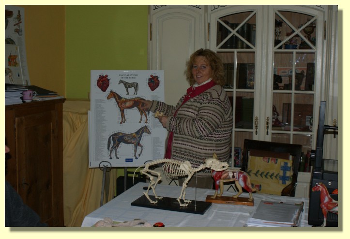 Tina Wassing erklärt den Schülern an welchen Stellen die Lungen von Pferden abgehört werden. |